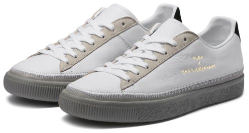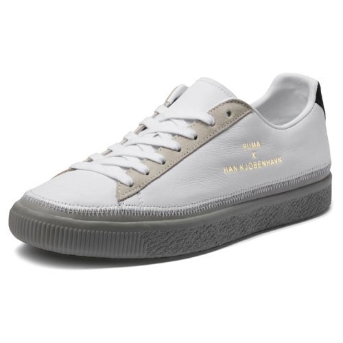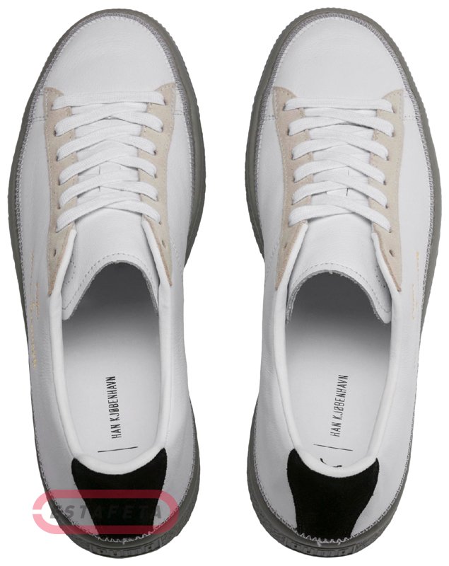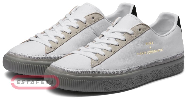 Кеды Puma Clyde Stitched HAN выпущены в коллаборации с брендом из Копенгагена Han Kjobenhavn. За основу была взята модель Clyde. Модель получила необычный брендинг и модную строчку. Кроссовки выполнены из премиальной кожи в превосходном цветовом решении – белый, серый и бежевый цвета, смотрятся очень гармонично и дорого. Пружинящая подошва из легкого вспененного материала IMEVA (injection-moulded EVA foam) обладает отличными амортизационными свойствами и придает стопе дополнительную устойчивость. Внутренний слой кроссовка обеспечивает высокий уровень комфорта, плотно и мягко облегая ногу. Износостойкий резиновый протектор обеспечивает стабильность и разнонаправленное сцепление. Золотистый брендинг Puma x Han Kjobenhavn Clyde на внешней боковой стороне кроссовка.