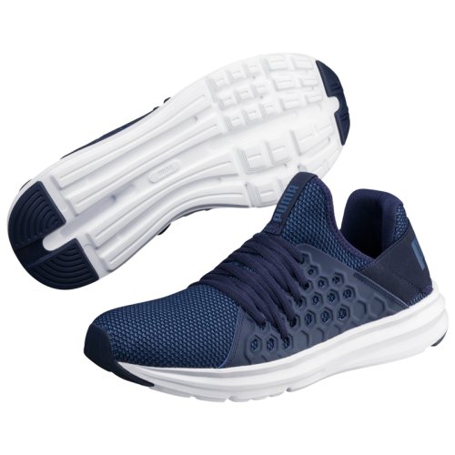 Кроссовки Puma Enzo NF легкость, комфорт, невероятная гибкость и адаптивная поддержка. Верх модели имеет конструкцию Slip on и выполнен из комбинации неопрена и текстильного материала, что обеспечивает отличную посадку обуви на стопе и достаточный уровень вентиляции. По бокам обуви расположен стабилизирующий каркас, который служит основой системы шнуровки, он обхватывает и фиксирует стопу. Расположенный сзади эластичный ремешок дополнительно фиксирует и поддерживает задник. Мягкая стелька из материала SoftFoam с эффектом памяти гарантирует удобство на пробежке. Гибкая подошва изготовлена из легкого пружинистого пеноматериала EVA, который гарантирует отличную амортизацию, а канавки Flex grooves придают подошве превосходную гибкость и облегчают плавность перехода с пятки на носок. Прочный износостойкий протектор гарантирует отличное сцепление. Брендинг PUMA.