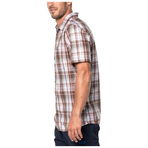 Летняя мужская тенниска с короткими рукавами, отличающаяся отличным качеством. Добротная и одновременно легкая ткань хорошо пропускает воздух, защищая между тем кожные покровы от влияния солнечного ультрафиолета. Классический покрой изделия предусматривает прямой силуэт и мягкое прилегание к телу. Рубашка Jack Wolfskin Hot Chili Shirt Men застегивается в переди на пуговицы, расположенные на планки. Крупная клетка, имеющаяся на поврехности изделия, относит рубашку к категории повседневной одежды. Внутернние швы не мешают коже во врмя эксплуатации.