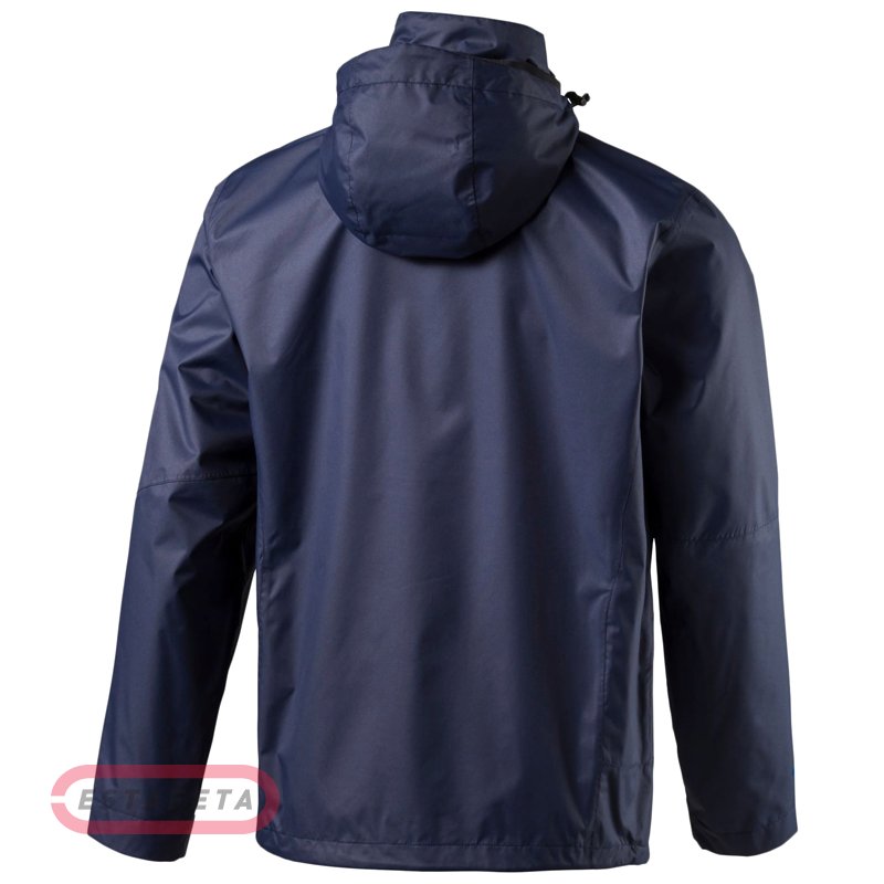 Эта модель мужской ветровки, несомненно, пригодится спортсменам, вынужденным заниматься тренировками в любое время суток и при любой погоде. Изготовленная из прочной синтетической ткани, она совершенно не пропускает холодный воздух к телу, обеспечивая наиболее благоприятный температурный режим для кожных покровов. Изделие застегивается по переднему краю при помощи прочного зиппера, для защиты от ветра там предусмотрен широкий продольный клапан. Манжеты на рукавах регулируются по объему и фиксируются при помощи липучек. Небольшой капюшон плотно сидит на голове, фиксируясь специальным встроенным шнуром. Один внутренний карман и два боковых наружных значительно увеличивают функциональные возможности ветровки.