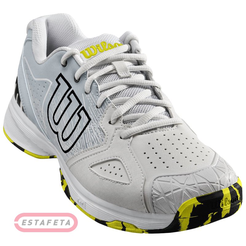 Мужские кроссовки для тенниса Wilson m KAOS DEVO W/BL/YEL SS18 изготовлены из очень прочной и качественной синтетической кожи, дополненной сетчатым текстильным материалом для лучшей вентиляции и комфорта. Модель имеет легкий и гибкий верх, специальные зональные вставки с перфорацией также способствуют свободному воздухообмену. Технология 2D-FS повышает стабильность и долговечность в зонах с высоким уровнем износа. Классическая шнуровка гарантирует удобство и надежно фиксирует модель на ноге. Технология Dynamic Fit (DF-2) гарантирует превосходную амортизацию и эффективное поглощение ударов, а также лучшее ощущение корта, а инновационная система R-DST + возврат энергии с каждым шагом. Удобная мягкая стелька 3D HIGH DENSITY Ortholite SOCKLINER позволит вашим стопам «дышать» и длительное время не уставать. Резиновая подошва отличается высокой степенью устойчивости к износу благодаря уникальной подметке DURALAST Outsole, которая способствует непревзойденному сцеплению с игровыми поверхностями. Модель подходит для всех типов игровых поверхностей. Лого Wilson на боковых сторонах кроссовка.