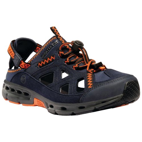 Сандалии Regatta Ripcord - мужские непромокаемые сандалии для любителей активного отдыха на природе, озерах и реках. Благодаря особенному материалу сандалии легкие и удобные. Качественный верх из искуственной замши с мягкой тканевой подкладкой оптимально сидит на ноге, защищает от неблагоприятных условий и обладает вентиляционными свойствами. Регулируемая система затяжек обеспечивает мягкую фиксацию, а дренажная стелька гарантирует дополнительный комфорт и быстрое освобождение от влаги. Стабильная резиновая подошва придают изделию прочности, устойчивости и обеспечивают прекрасное сцепление с разными поверхностями. Промежуточная прокладка подошвы с стабилизирующим супинатором придают сандалиям пружинящую амортизацию.