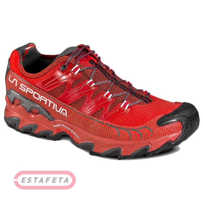 Кросівки для бігу La Sportiva Ultra Raptor rust/red з дихаючим верхи із тканини Air-mesh призначені для бігу по пересіченій місцевості, змагань по ультра марафону, тривалих тренувальних сесій, це особистий вибір для скайраннінгу й трейлраннінгу. Верх моделі з посиленнями з мікрофібри "Easy-in" PU забезпечує чудову вентиляцію й швидкий випар вологи. Обгумований носок захищає від ударів про камені. Оптимальна регуляція обсягу й ступені охоплення ноги досягаються за рахунок інноваційної шнурівки. Інтегрована система шнурівки використовує петлю, вшиту у внутрішню еластичну тканину з посиленнями на зовнішній тканині. Це дозволяє рівномірно розподіляти натяг по всьому кросівку, тим самим підвищуючи рівень комфорту. Ultra Raptor поєднує переваги щільно прилеглої колодки для швидкого бігу й комфорт моделей з більш широкою колодкою. Ергономічна устілка оптимізована для гірського бігу. Різнорівнева платформа (ширше в мисці й нижче на пятке) для оптимальної амортизації ударного навантаження при бігу по будь-якій поверхні в будь-яких погодних умовах. Проміжна підошва, амортизуюча ударне навантаження з EVA 2 mm c про стабілізуючою вставкою. Підошва: FriXion XF із систеться IBS і із застосуванням Impact Brake System. Вага: 700 г (пари 42-го розміру).