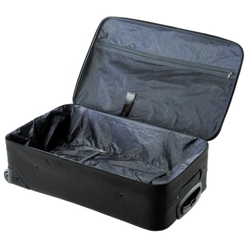 Дорожная сумка предназначена для путешествий. Выполнена из высокопрочного полиэстерового материала с повышенной износостойкостью. Отделение закрывается молнией, внутри предусмотрены отсеки для мелких вещей. Сумка с выдвижной двухступенчатой телескопической ручкой и колесиками. Размер: 76х45х25 см, вместительный объем - 80 л.