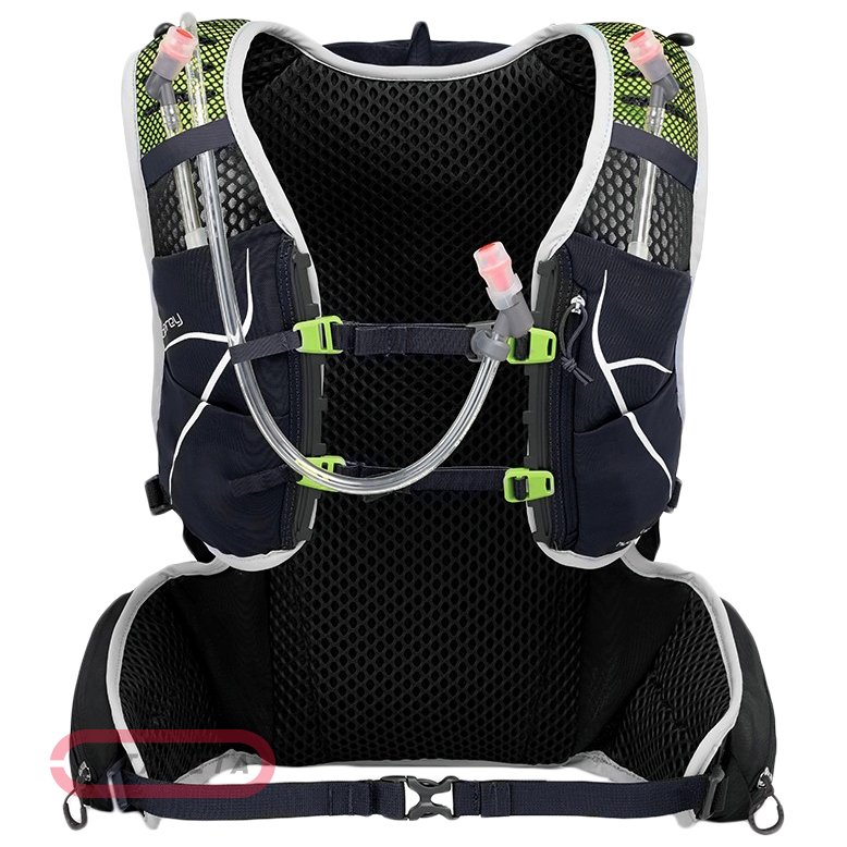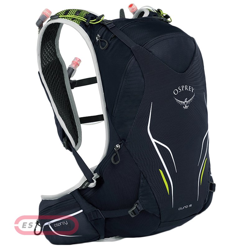 Спортивный технологичный рюкзак Osprey Duro 15 Alpine Black - M/L - черный, укомплектованный системой гидрации Hydraulics™ LT 2,5 л, предназначен для бега по пересеченной местности и непродолжительных походов. Суперлегкая, прочная конструкция обладает устойчивым к истиранию верхом, разработанным из нейлона повышенной плотности. Модель оснащена карманами из эластичной сетки, внутренним отсеком для гидратора, карабином для пристегивания ключей, а также функциональной системой для переноски трекинговых палок Stow-on-the-Go. Рюкзак представлен в оригинальной форме жилетки с фиксацией на талии, что гарантирует максимальный комфорт и предотвратит смещение в процессе физической активности. Анатомическая спинка и эргономичные лямки Duro 15 сшиты из сетчатой ткани для великолепной вентиляции во время тесного контакта с телом. Карманы из эластичного, сетчатого материала на лицевой стороне жилета и отделения с застежками на поясе обеспечивают быстрый доступ к важным, подручным вещам прямо на ходу. В карманах на лямках жилета предусмотрено две мягких фляги объемом 500 мл, оборудованные шлангами. Съемная грудная стяжка позволяет снизить давление на позвоночник, крепко зафиксировав рюкзак на фигуре.