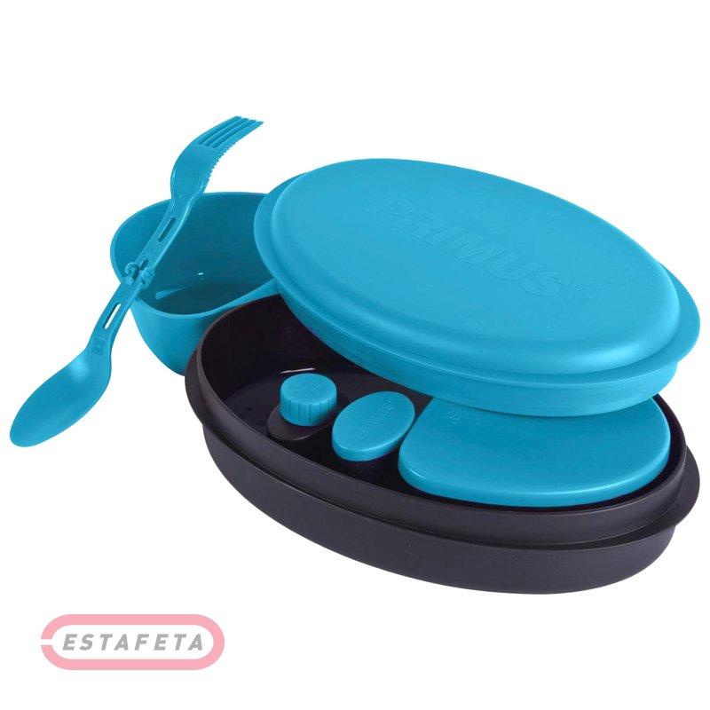 Столовий набір PRIMUS Meal Set Blue щонайкраще підійде для використання в похідних умовах. Даний набір складається з найбільш затребуваних столових приладів і ємностей, які можуть знадобитися для комфортного приймання їжі. Виготовлений з харчового пластику, який не вступає в реакцію з їжею, не має заходу й абсолютно безпечний для здоров'я людини. Має легка вага. Для зручності транспортування комплекту всі його елементи складаються в миску-контейнер, яка щільно закривається кришкою, перешкоджаючи випаданню вмісту. Після використання посуд легко миється й швидко сохне.