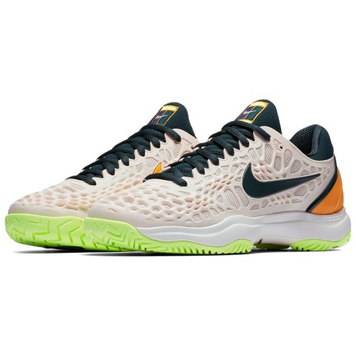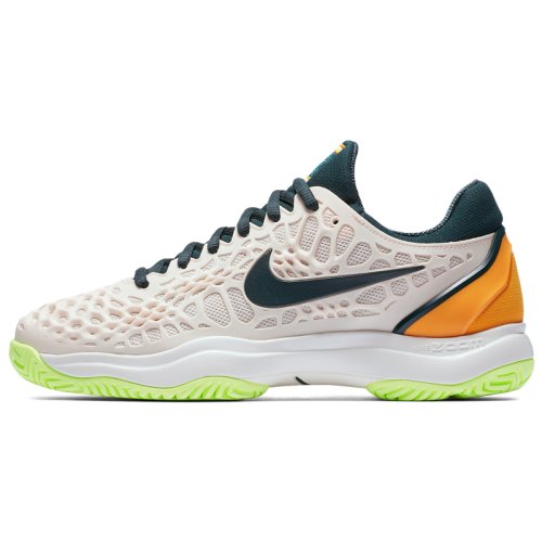 Игроки, ищущие поддержки и стабильности, не жертвуя скоростью, найдут Nike WMNS AIR ZOOM CAGE 3 HC отличным вариантом. Обновленная конструкция bootie с добавленной обивкой комфортно фиксирует лодыжки. Новый дизайн верха с использованием прочного материала kurim в виде ячеистой структуры, покрывающей воздухопроницаемую текстильную сетку для удобной посадки и плотной, надежной подгонки. Такая комбинация материалов обеспечивает фиксацию стопы, придает прочность и гибкость верху кроссовка, а также отлично пропускает воздух. Утолщенный внешний воротник пятки дополнительно фиксирует ногу. Стабильность стопы усилена литой накладкой Drag-On в носочной области и с внутренней стороны кроссовка. Блок Nike Zoom обеспечивает большую гибкость и отличные амортизационные качества. Подошва из высокопрочной резины XDR, имеющая отличные демпфирующие свойства и высокую износостойкость, дополнительно усилена в местах повышенного износа. Протектор HC (Hard Court) разработан для кортов с любым твердым покрытием.