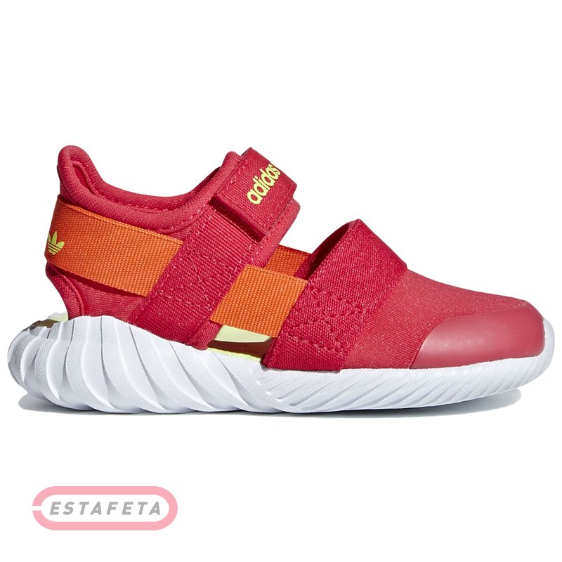 Детские сандалии Adidas DOOM SANDAL I ACTPNK|TRU вдохновлены кроссовками 90-х годов TUBULAR DOOM с футуристическим дизайном, инспирированным рисунком протектора автомобильных шин. Открытый текстильный верх приятно ощущается на ноге и позволяет коже дышать. Конструкция верха Sock-like облегает ногу, подобно носку, обеспечивая поддержку и комфортную посадку. Регулируемая застежка на липучку для надежной посадки. Комфортная и функциональная стелька с антимикробным покрытием. Усовершенствованная поддерживающая вставка на пятке с логотипом Trefoil. Защитная полиуретановая накладка в носочной области. Визитная карточка модели - узнаваемая легкая и гибкая подошва Tubular Doom.