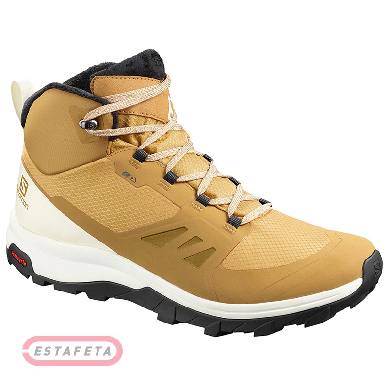 Ботинки Salomon OUTsnap созданы с использованием материалов и технологий, которые обеспечивают водонепроницаемость, превосходное сцепление на мокрой поверхности, амортизацию и защиту. Мембрана Clima Salomon Waterproof гарантирует водонепроницаемость от дождя и снега, благодаря чему стопа остается сухой. Теплоизолирующая подкладка Thinsulate сохранит ноги в тепле. Зимняя стелька Ortholite с верхним слоем из микрофлиса для дополнительного тепла. Защитный ободок на мыске позволяет защитить область пальцев и продлить срок службы обуви. Подметка Contagrip® MD обеспечивает отличное сцепление на мокрой, снежной, сухой или каменистой местности, а средняя подошва из пеноматериала EnergyCell EVA обеспечивает оптимальную амортизацию и возврат энергии. Средний вес пары: 720 г.