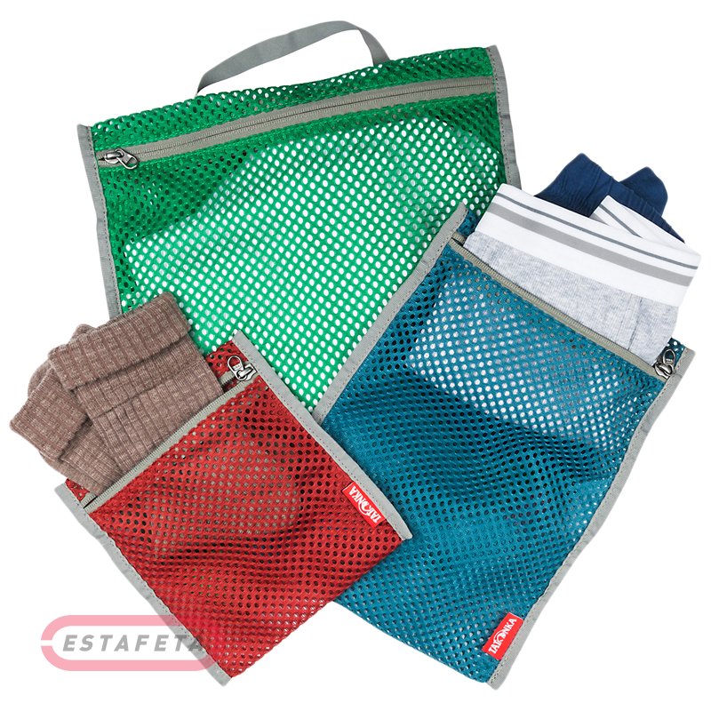 Чохол Tatonka Mesh Pocket Set із трьох штук. Усі різного розміру, мають застібку-блискавку. Сітчастий матеріал для вентиляції робить ці чохли більш практичними для організації дрібних речей під час подорожей. Кожний має зручну ручку-петельку.