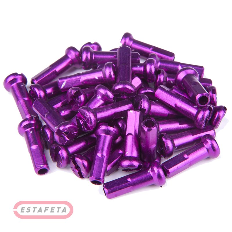 Комплект ниппелей для спиц с анодированным покрытием. Изготовлены из алюминиевого сплава. Длина - 14 мм. Резьба - ВС 2.0. В комплекте 38 шт, вес - 13 г.