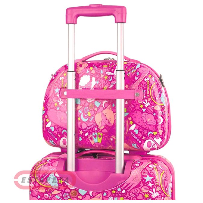 Дорожная детская сумка для путешествий. Выполнена из поликарбоната с повышенной износостойкостью. Главное отделение закрывается на молнию, внутри отсек с фастексом, есть зеркало. Пластиковые ножки для придания устойчивости сумке. Широкий наплечный ремень, регулируемый по длине. Прочная пластиковая ручка для удобной транспортировки. Молнии, запираемые на замок (замок в комплект не входит). Дополнительная ручка на тыльной стороне, для крепления и транспортировки сумки на выдвижной рукоятке основного багажа. Сумка вместительная, удобная, компактная. Размер: 28х35 см, объем - 12 л, вес - 1 кг.