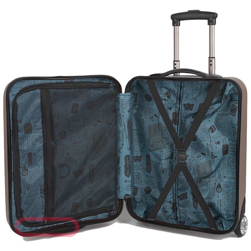 Чемодан для путешествий. Выполнен из ABS-пластика. Обладает прочностью, устойчивостью к перепадам температур. Внутри имеет сеточный карман на молнии, эластичные компрессионные ремни на фастексах для фиксации багажа внутри чемодана. Предусмотрена выдвижная телескопическая ручка с фиксатором на 2 положения. Колеса (4 шт) из термополиуретана, пластиковые ножки на боковой части чемодана для придания устойчивости. Ручка в верхней и боковой части чемодана для удобства транспортировки в вертикальном положении. Оборудован специальным кодовым замком с функцией таможенного досмотра TSA LOCK. Размер: 53х38х20 см, объем - 33 л, вес - 2.6 кг.
