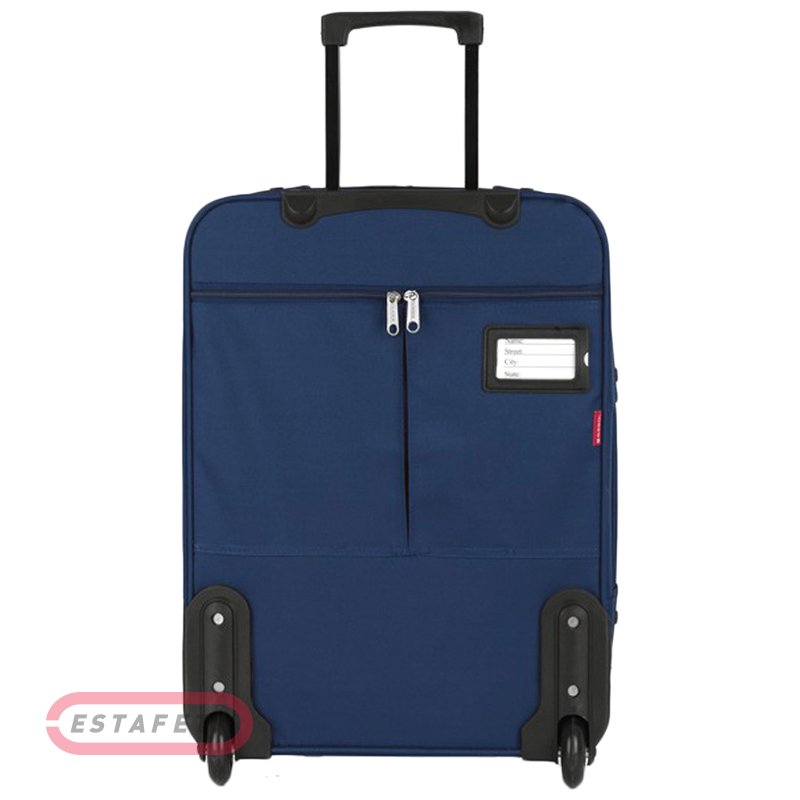 Чемодан для путешествий. Выполнен из полиэстера. Обладает прочностью, устойчивостью к перепадам температур. Внутри имеет сеточный карман на молнии, эластичные компрессионные ремни на фастексах для фиксации багажа внутри чемодана. Предусмотрена выдвижная телескопическая ручка с фиксатором на 2 положения. Колеса (2 шт) из термополиуретана, пластиковые ножки на боковой части чемодана для придания устойчивости. Ручка в верхней и боковой части чемодана для удобства транспортировки в вертикальном положении. В комплекте навесной кодовый замок. Окно "ID" (контактная информация о владельце багажа). Размер: 40х55х20 см, объем - 34 л, вес - 2.9 кг.
