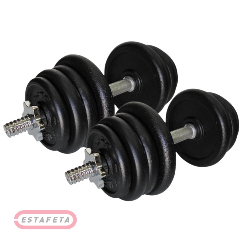 Гантели наборные для занятий спортом в зале и в домашних условиях. Форма грифа прямая. Вид замка - винтовой. Длина - 33 см, диаметр отверстия - 3 см. Вес данной модели - 2х25.5 кг. Предусмотрены удобные вставки для рук, предотвращающие выпадение гантелей во время занятий спортом.
