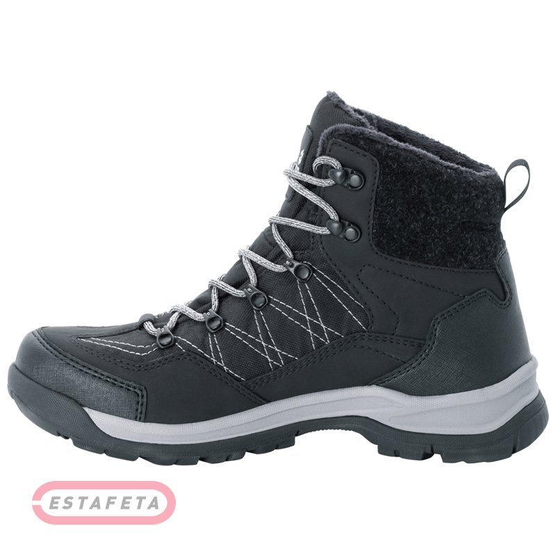 Черевики Jack Wolfskin ASPEN TEXAPORE MID. Водонепроникається зимове взуття середньої висоти з теплої флісовий підбивкою, надійний компаньйон для зимових прогулянок і активного відпочинку. Комбінація синтетичних матеріалів верху з водонепроникається й дихаючої мембраною TEXAPORE надійно захищає ногу від вітру й води. Підбивка з м'якої флісовий тканини NANUK зігріває ноги навіть у мороз. Завдяки профільованій підошві у вас завжди буде надійне зчеплення з дорогою. Комбінована шнурівка на гачках дозволяє адаптувати взуття індивідуально до вашої стопи й підйому, уникаючи крапок тиску й тертя. Устілка з EVA має м'яку теплу підбивку й робить взуття неймовірно зручної. Середня підошва з EVA амортизує й знімає навантаження на суглоби. У даній моделі використовується зимова підошва підвищеної стійкості WINTER GRIP, яка забезпечує відмінне зчеплення з льодом і снігом. Температура комфорту до -20 ° C. Сертифікат STAY-WARM, виданий дослідницьким інститутом PFI Pirmasens. Брендінг Jack Wolfskin. Вага: 1040 г / пари (розмір 8).