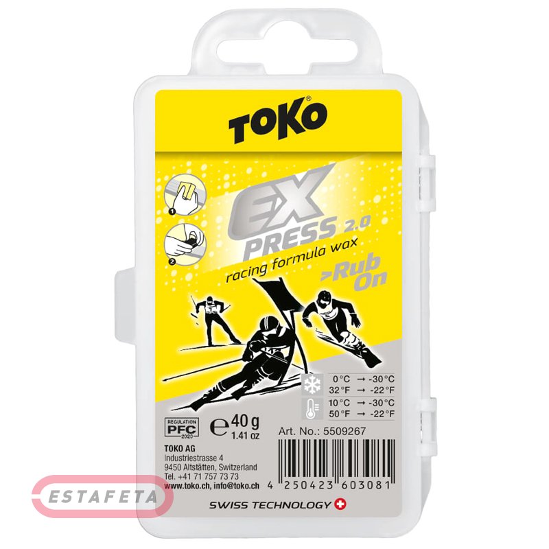Toko Express Racing Paste Ski Wax 50g - это высокофторированный воск для гоночных лыж для всех типов снега и температур. Температурный режим: от -30 до 0 ° C. Наилучшие возможные значения ускорения. Очень хорошие скользящие свойства. Идеально подходит для энтузиастов зимних видов спорта, ориентированных на результат, особенно подходит для сноубордов и лыж для фрирайда. Наносите прилагаемой губкой. Для повышения качества полируйте с помощью TOKO Thermo Cork или Dual Pad. Также может использоваться как базовая защита (летом) и как защита от ржавчины для кромок лыж.
