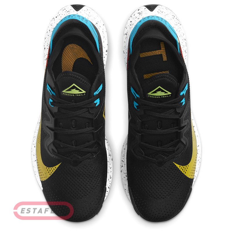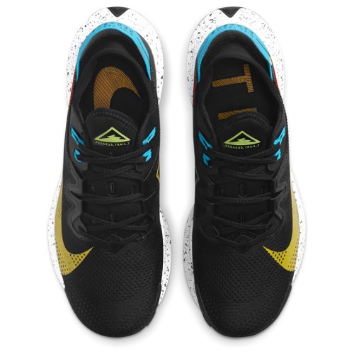 Кроссовки NIKE PEGASUS TRAIL 2 Black Gold выполнены в обновленном дизайне для еще большей скорости, модель имеет специальный трейловый протектор. Верх из сетчатого текстиля с упрочняющей 3D структурой из синтетического материала делает модель более легкой по сравнению с предыдущей версией и превосходно пропускает воздух, помогая вашей стопе оставаться в безопасности. Внутренняя поверхность кроссовка выполнена из текстиля, который дополняет чувство комфорта и удобной посадки кроссовка. Усиленный задник отвечает за поддержку и надежную фиксацию пятки. Вставка-гетра на вороте защищает от попадания грязи и мусора. Перфорированный язык улучшает воздухопроницаемость и дренаж. Разнонаправленное тяговое усилие. Резиновая подошва с рисунком Shockwave в стиле велосипедных шин. Выступы протектора обеспечивают сцепление с дорогой и плавность хода, помогает вам оставаться в безопасности при подъеме или спуске. Отзывчивая стабильность: пена Nike React обеспечивает мягкую реакцию, гибкость и плавный перекат. Вес: 333 г (мужской размер 9). Перепад от пятки к носку: 10 мм (передняя часть стопы 16 мм, пятка 24 мм).