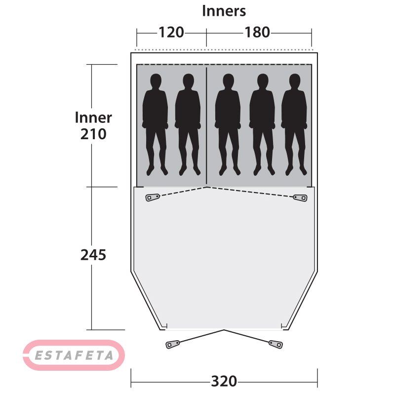 Намет Outwell Dash 5 Blue (111048) п'ятимісна, тунельного типу. Внутрішній намет має знімну перегородку для поділу приміщення на 2 і 3 спальних місця. Просторий тамбур висотою 200 см з тонованими вікнами створює простір для розміщення кемпінгових меблів і зберігання речей. Велике бічне вікно наповнює внутрішній простір світлом і забезпечує відмінний огляд. Знімна підлога тамбура може використовуватися, коли це необхідно й легко знімається при збиранні. Регулюється вентиляційне вікно в тильній частині намету забезпечує приплив свіжого повітря, а також рятує від утвору конденсату. Москітна сітка на верхній частині дверей спальні. Кругова вентиляція Outwell Rear Ventilation System забезпечує постійний приплив свіжого повітря, а також позбавляє утвору конденсату. Конструкція: двошарова. Каркас: дуги Duratec зі скловолокна. Матеріал зовнішнього тенту: Outtex 3000 Select - зносостійкий, якісний, 100% поліестер, який відповідає основним вимогам, пред'являються до тканин, ідеальних для звичайного кемпінгу. Він вогнестійкий, має поліуретанове покриття, яке забезпечує водонепроникність 3000 мм вод. ст. Матеріал внутрішнього намету: Breathable polyester - повітропроникається 100% поліестер. Матеріал дна: Double-coated waterproof polyethylene - водонепроникається двошаровий 100% поліетилен. Тканина намету оброблена протипожежною сумішшю Fire Retardant, яка сповільнює й обмежує поширення вогню, а також набагато знижує токсичні випари й виділення диму в процесі горіння. Протипожежні суміші нешкідливі для здоров'я людини, екологічно чисті й нетоксичні. Усі шви дна й тенту намети проклеєні спеціальною стрічкою, яка гарантує захист від проникнення вологи в дощову погоду. Wind Guard System: система захисту від вітру, яка з'єднує зовнішній тент із дугою, щоб забезпечити підвищену стійкість намету при сильному вітрі. Система кріплення внутрішнього намету Hanging Point System до зовнішнього тенту за допомогою підвісних фіксаторів, приклеєних до нього для міцності й безпеки. У комплекті: настановний набір, компресійна сумка для перенесення намету. Внутрішній намет (Д х Ш х У): 210 х 300 х 190 см. Зовнішній тент (Д х Ш х У): 475 х 320 х 200 см. Розміри в складеному виді (Д х Ш х У): 70 x 26 x 26 см. Вага намету: 11,1 кг.