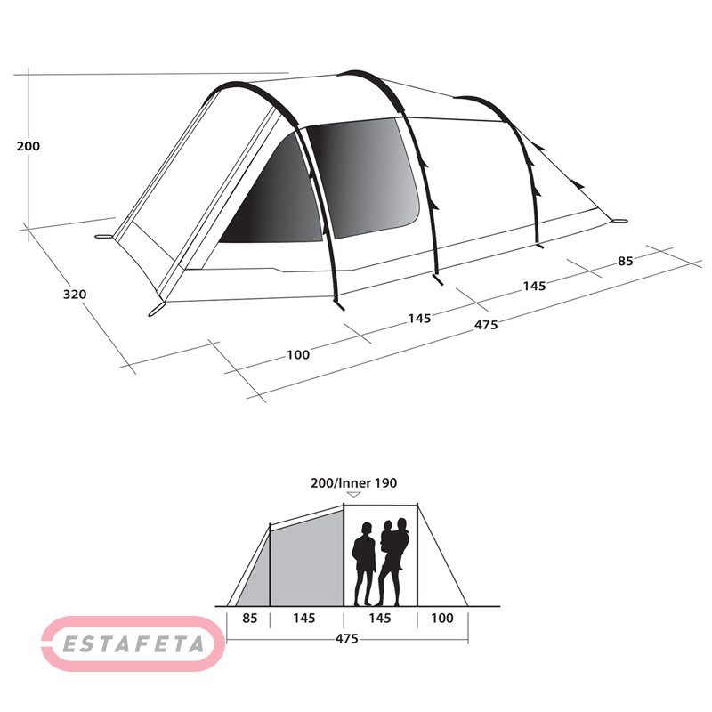 Матеріал: верх: Outtex 3000 Select поліестер; внутрішня частина: поліестер Breathable; підлога: поліетилен Double-coated waterproof polyethylene; дуги: скловолокно Duratec Ø11 мм