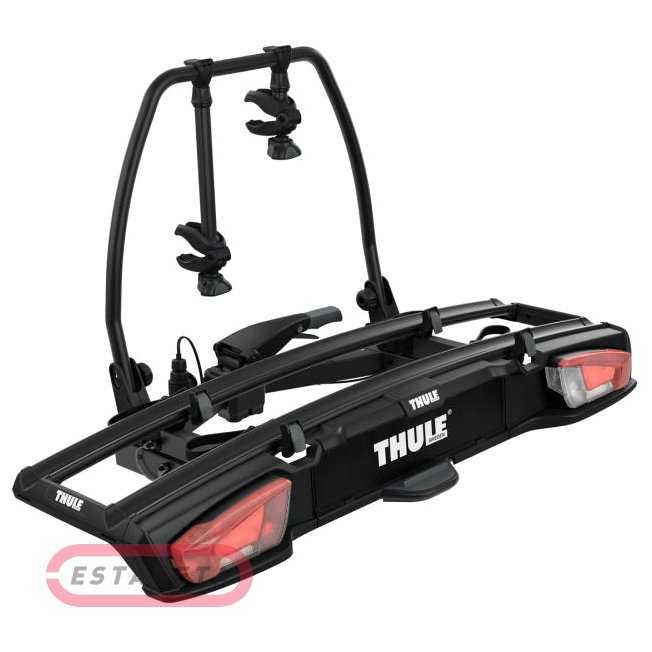 Thule VeloSpace XT 2 - універсальне кріплення для велосипедів для всіх типів велосипедів - від електровелосипедів і фетбайків до маленьких дитячих велосипедів. Висока вантажопідйомність, що дозволяє перевозити електровелосипеди й важкі гірські велосипеди. Надширокі між власниками коліс (25 см) для полегшення установки міцних велосипедів. Можна побільшати вантажопідйомність до 3 велосипедів, додавши велосипедний адаптер Thule VeloSpace XT. Наддовгі колісні піддони для перевезення більших велосипедів (колісна база до 1300 мм). Проста установка й регулювання кріплення для велосипеда перед закриттям ручки затягування завдяки початковій стійкості зчіпного обладнання фаркопа. Легкий доступ до багажника навіть із установленими велосипедами завдяки інтелектуальному нахилу педалі.
