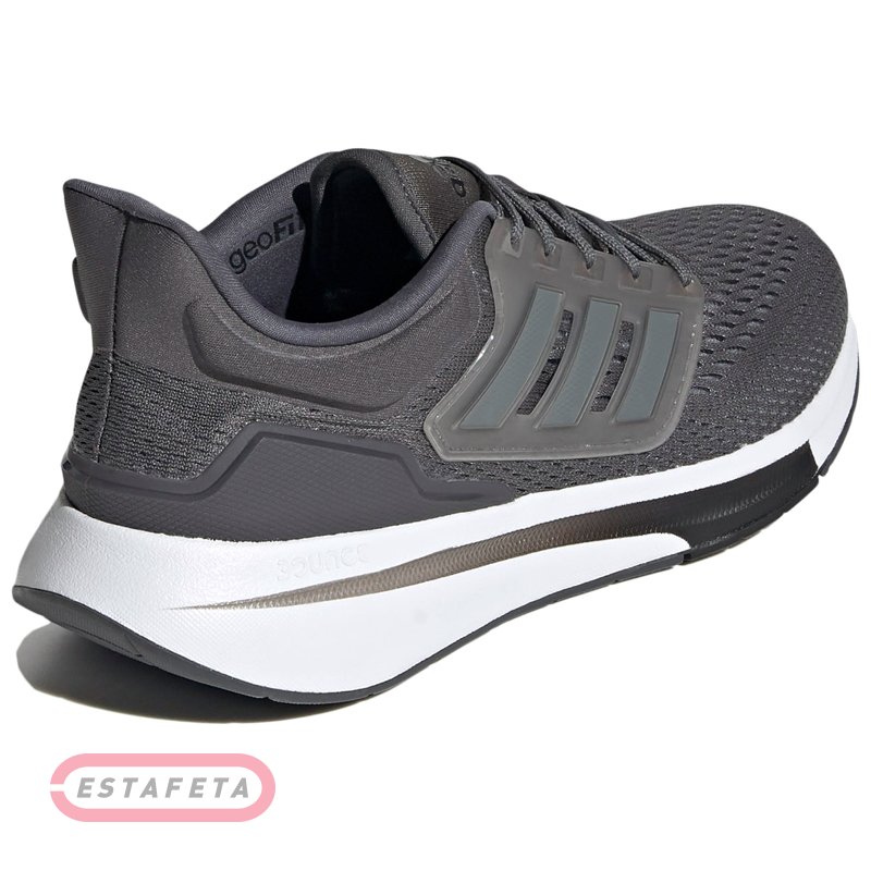 Зручні бігові кросів Adidas EQ21 Run на щодня. Комфортний дихаючий верх допомагає ногам не перегріватися на дистанції, а легка амортизація зм'якшує кожний крок від старту й до фінішу. Стабілізатори з термополіуретану в середній частині стопи й на п'яті. Пружна амортизація Bounce® забезпечує комфорт. Еко-Ініціатива: мінімум 20% елементів верху на 50% складаються з перероблених матеріалів. Протектор підошви покритий TRAXION гумою, яка відома своїм прекрасним зчепленням навіть на слизьких поверхнях. Перепад висоти на проміжній підошві: 10,5 мм. Вага: 584 г (розмір 41).