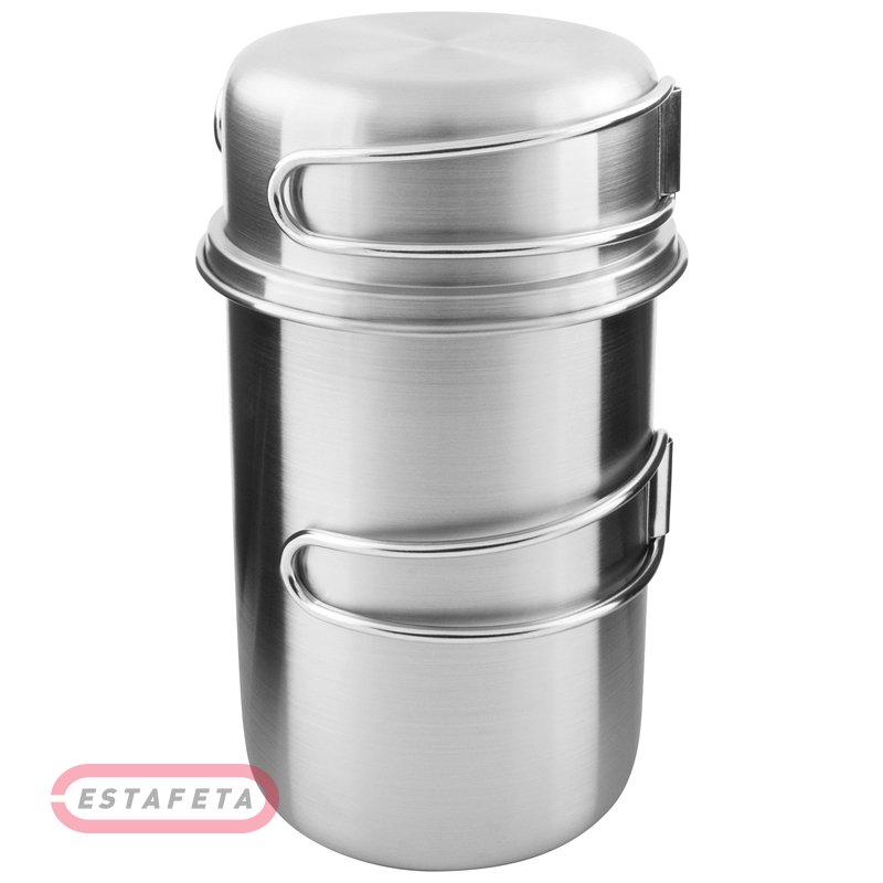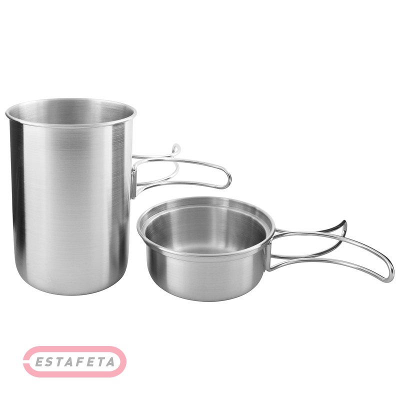 Високоякісний набір з 2-х кухлів об'ється 850 мл. Стане невід'ємне частиною під час походу. Виконаний набір з якісної нержавіючої сталі, не несе шкоди їжі й людині. У даному наборі можна готовити на багатті. Вага - 325 г, розмір - 11х17.5 см.