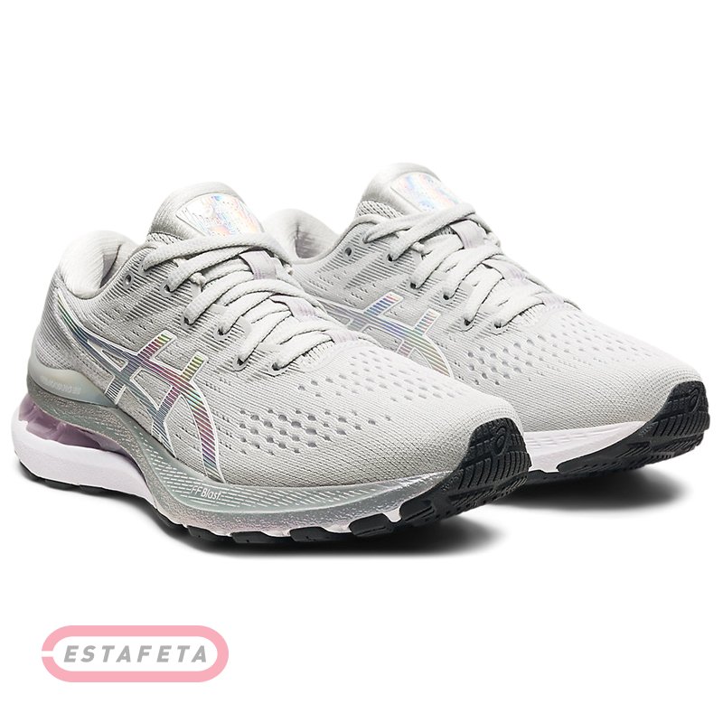 Кросівки Asics GEL-KAYANO 28 мають оновлену конструкцію з технологією GEL ™ і забезпечують плавний крок, дозволяючи вам випробувати більш м'яке приземлення без втрати швидкості. Це вже 28-я версія в серії GEL-KAYANO, яка поліпшується з кожним новим відновленням, додаються новітні матеріали й технологічні розробки. Модель є концептуальної, у ній щонайкраще сполучаються інноваційні технології й матеріали, а результатом стає продукт найвищої якості. Щоб поліпшити стабільність і чуйність, у міжпідошву доданий новий легкий піно матеріал FLYTEFOAM™ Blast, який має максимальний рівень відскоку й легкою вагою. Технологія амортизації FLYTEFOAM ™ Blast, забезпечує максимальний рівень повернення енергії й чуйність під час перегони, а також плавність і підтримку на кожному кроці. Завдяки більш низькопрофільному зовнішньому упору для п'яти, ця деталь утримує вашу ногу за рахунок поліпшеної підтримки задньої частини стопи. Верх виконаний із сітчастого матеріалу для додаткової повітропроникності. Система підтримки DYNAMIC DUOMAX ™ у проміжній підошві забезпечує кращу підтримку й допомагає протистояти надмірній перенапрузі, знижує навантаження на стопу при гіперпронації й забезпечує плавний перехід від приземлення до відштовхування. Технологія Asics GEL™ Cushioning System у носку й пятке для максимального поглинання ударного навантаження. Анатомічна формована устілка ORTHOLITE™ lasting виконує функцію підтримки стопи й додатково амортизує. Проміжна підошва з технологією 3D SPACE CONSTRUCTION™ забезпечує стабільність і знижує загальна вага. Гнучкі канавки в передній частині стопи дозволяють взуттю згинатися й рухатися більш природно разом зі стопою. Міцний протектор складається з елементів, розділених жолобками, для підвищення гнучкості у всіх напрямках і більш природнього діапазону руху. Гнучкі жолобки в області п'яти допомагають амортизувати первісний удар, що робить зіткнення стопи із землею більш м'яким. Матеріалом зовнішньої підошви є гума AHARPLUS ™, яка розміщається в місцях підвищеного зношування, продовжуючи термін служби кросівок. Світловідбивні елементи для підвищення рівня безпеки пересування в темний час доби. Модель входить у капсулу PLATINUM, це взуття підкреслене акцентами у квітах платины для створення розкішного образа. Вага: 271 г (розмір US 8), перепад від п'яти до носка: 10 мм (носок 12 мм / пятка 22 мм). Модель призначена для спортсменів з гіперпронацією стопи.