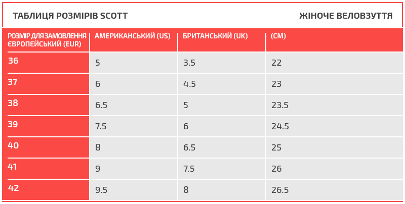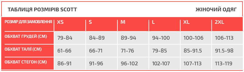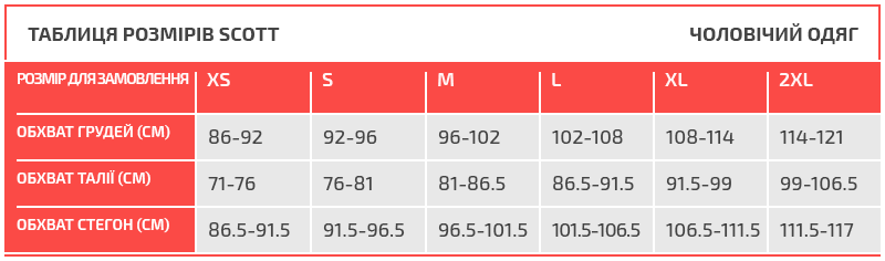 Таблиця розмірів Scott