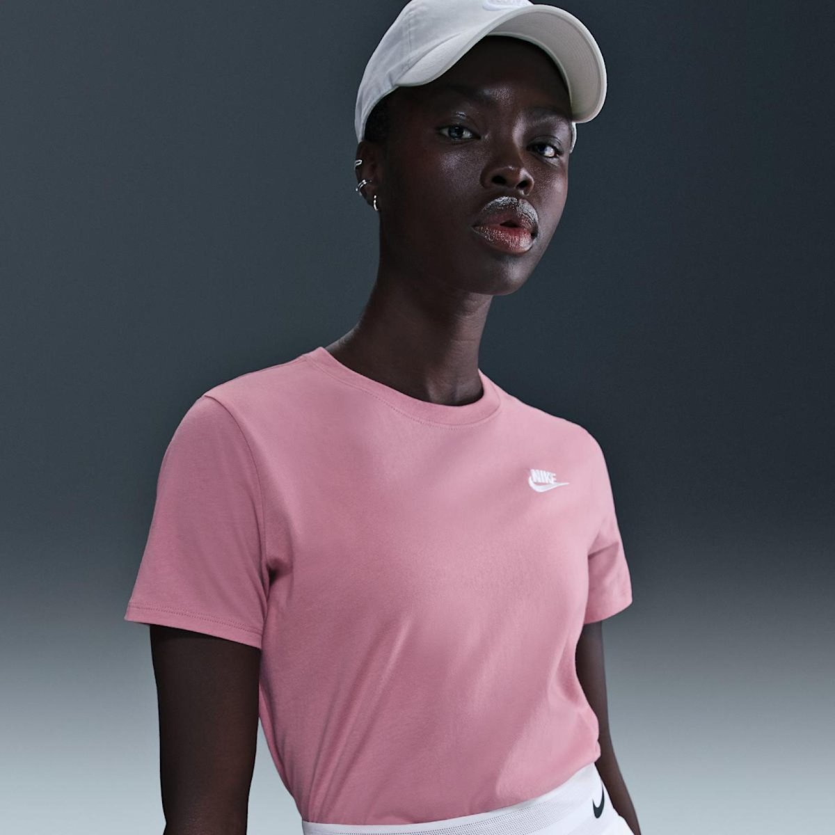 NIKE W NSW CLUB SS TEE - універсальна модель із вільним кроєм та заокругленим