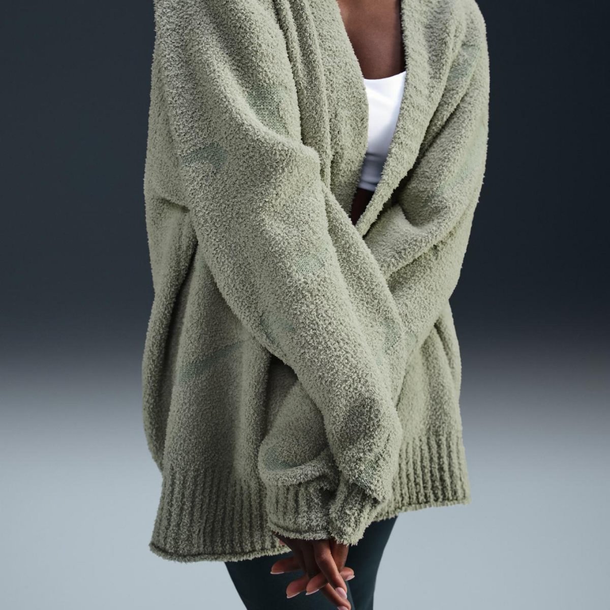 Кардиган NIKE W NIKE SPORTSWEAR PHOENIX BOUCLÉ AOJ CARDIGAN – класика. Цей кардиган крою оверсайз виконаний з розкішного букле - м'якого, щільного трикотажу, який допоможе вам зігрітися та відчути себе затишно.