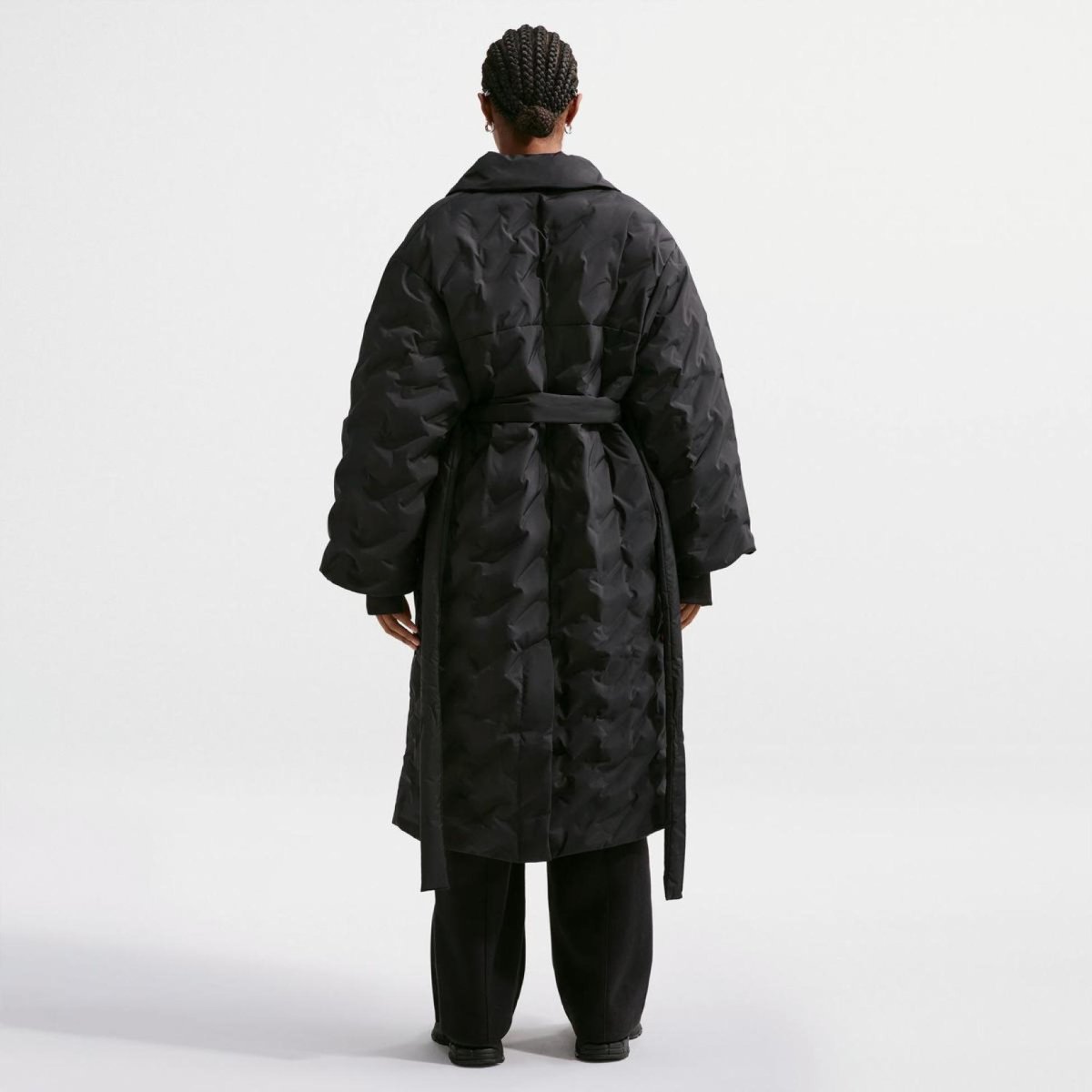Oversized крій (перебільшений та просторий), але пояс дозволяє регулювати